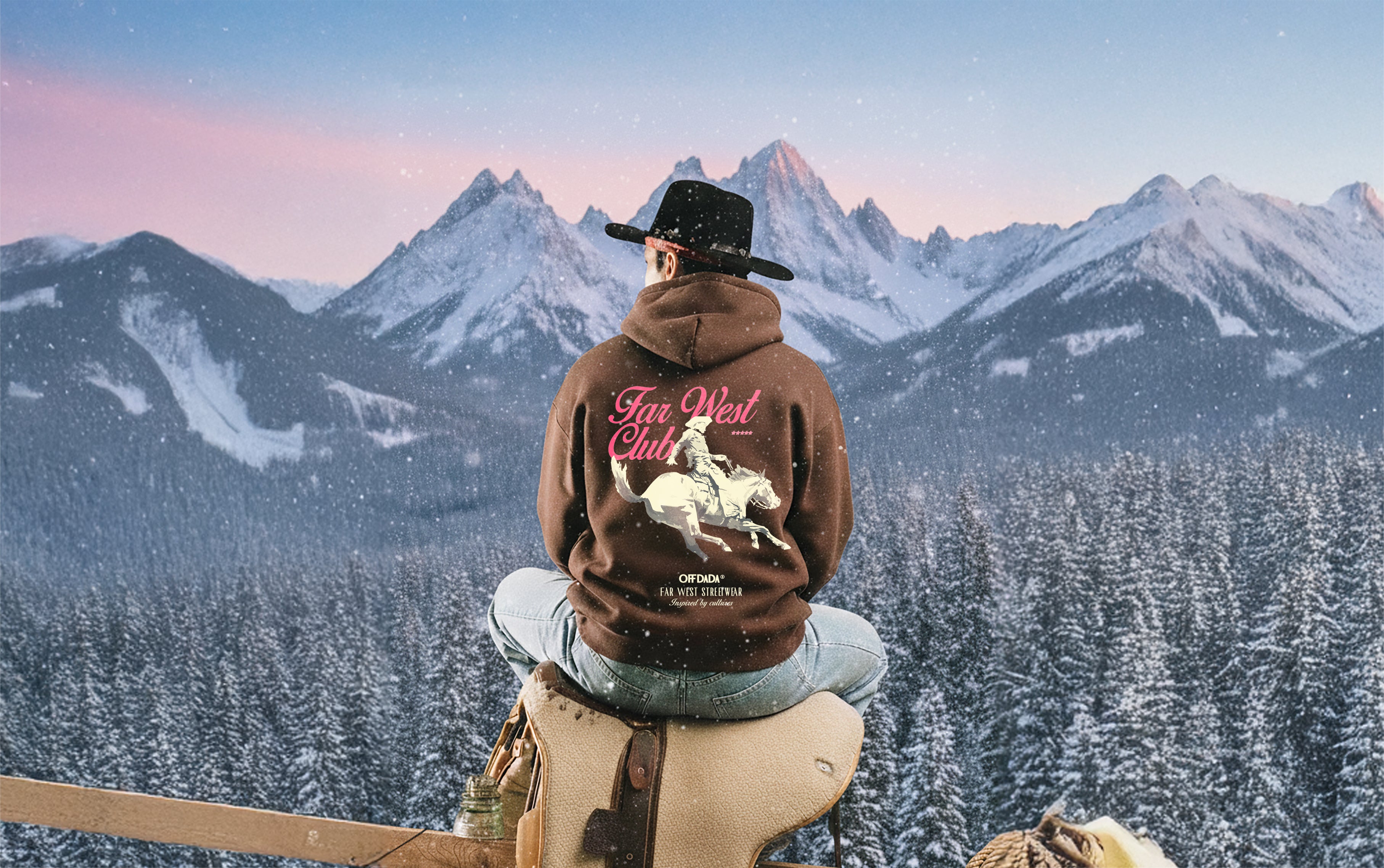 FarWest Oversize Fleeced Hoodie in Brown
