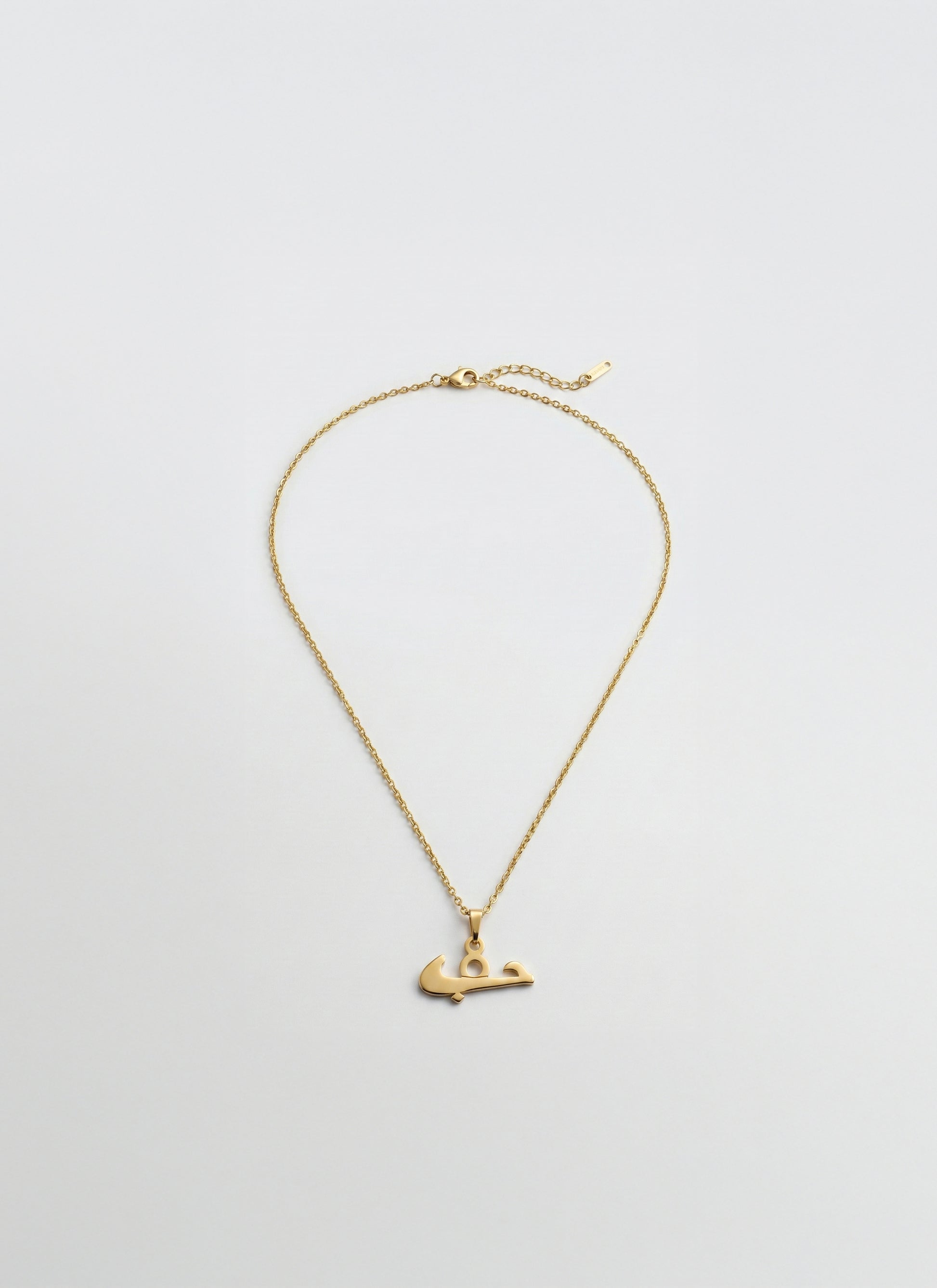 Elegant Arabic calligraphy pendant spelling "Hubb" (Love) in polished gold-tone. Features a durable twisted curb chain with secure clasp, sized at approximately 18–20 inches with a 1-inch pendant. Unisex and modern design.